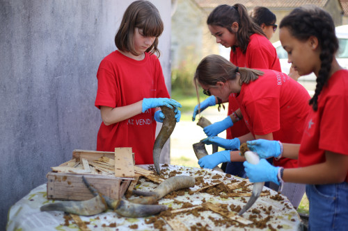采摘當日,當地的學生在總經理蘇拉先生的帶領下來到酒莊葡萄園,體驗葡萄傳統手工采摘、葡萄腳踩榨汁工藝、如何制作牛角殖土等不同環節,讓學生們在體驗過程中體會葡萄采摘的艱辛與樂趣。當然,采摘活動最有趣的部分,是生物動力法中的牛角殖土制作,有趣的制作過程令學生們大呼驚奇。